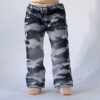 - プリントは「それっぽく見える」程度であり、正確なデニム表現ではありません。ウエストにファスナーやゴムはなく、するっと履ける仕様のため、腰まわりがすっきりとしたシルエットになります。